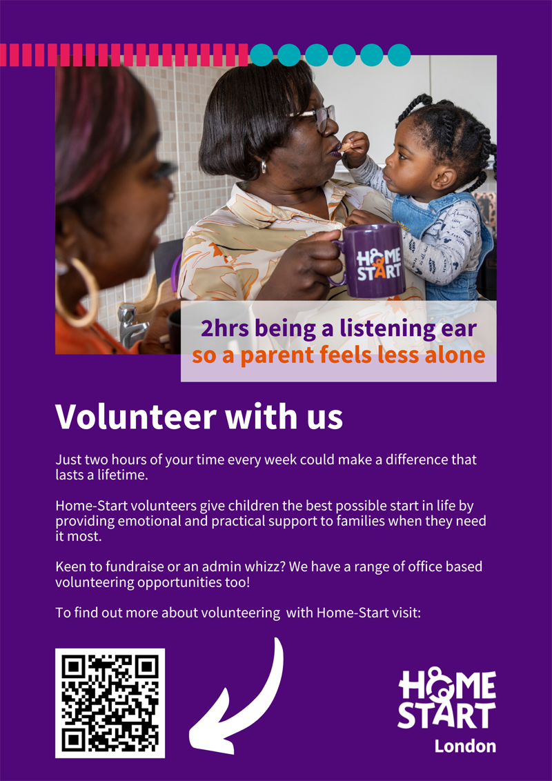 Home-Start Haringey Hackney and Waltham Forest is a charity which trains volunteers to support local families who are facing difficulties, and who have at least one child under the age of 12. We are part of a national network and believe that parents play the key role in giving their children the best start in life.